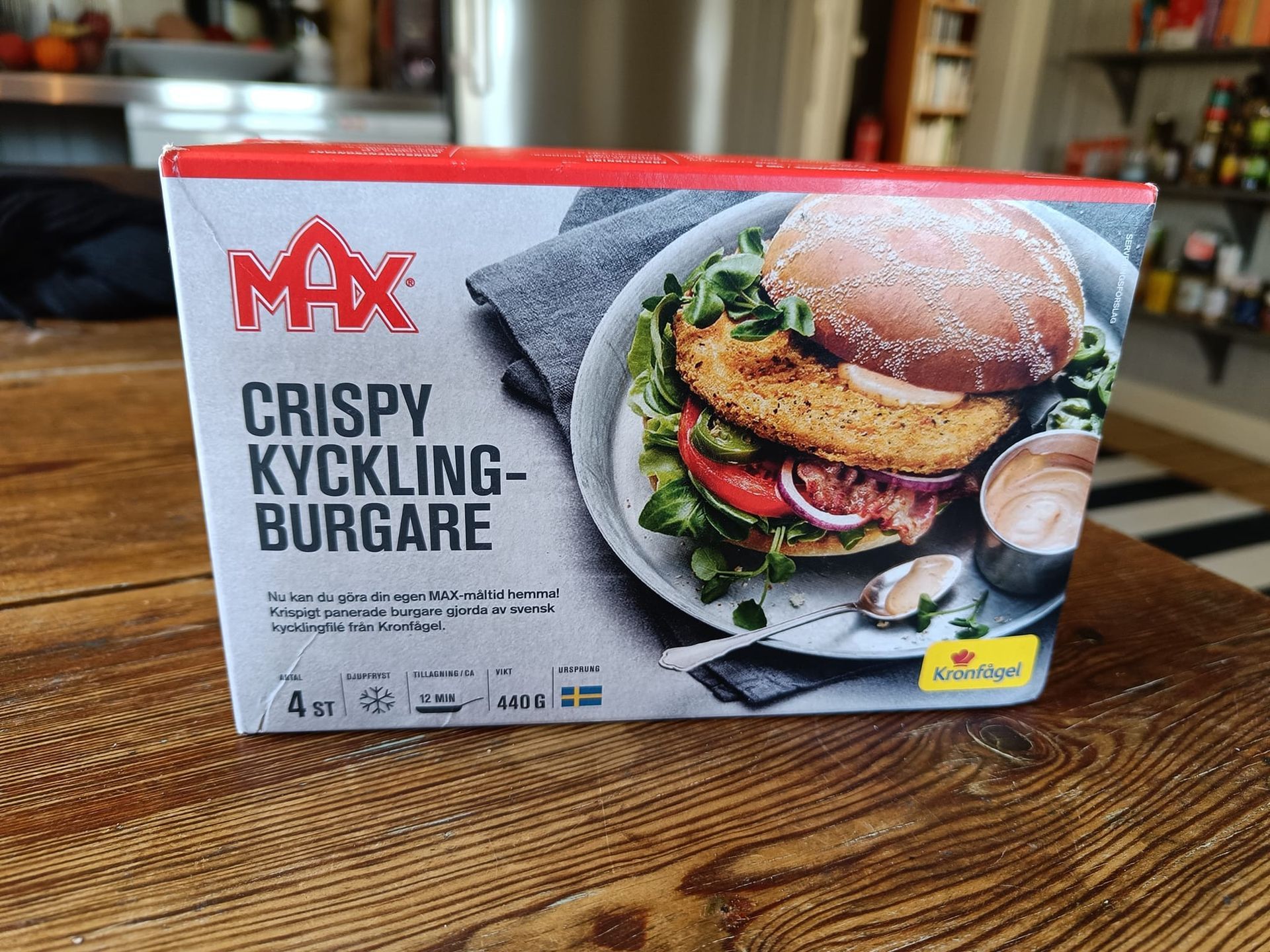 • MAX Crispy kycklingburgare. Går att hitta bl.a. på Willy's och Hemköp.